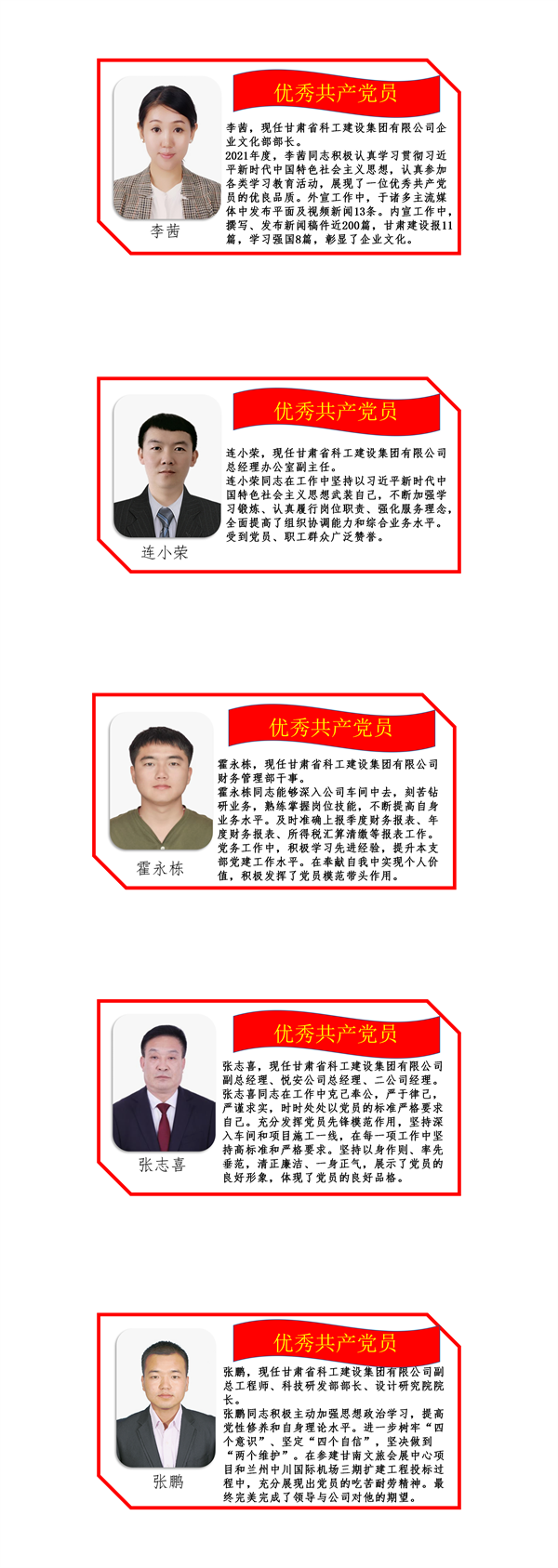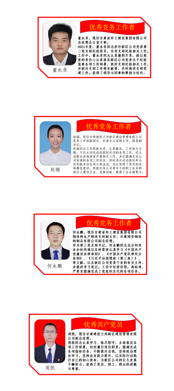 新區公司2021年度優秀共產黨員、優秀黨務工作者風采展