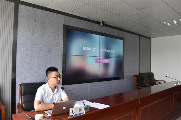 《保障農(nóng)民工工資支付條例》是新中國保障農(nóng)民工工資支付的第一部專門性法規(guī),是黨中央國務(wù)院為了規(guī)范農(nóng)民工工資支付行為、保障農(nóng)民工按時獲得工資、解決拖欠農(nóng)民工工資問題、維護(hù)農(nóng)民工合法權(quán)益的法律條例,始終是黨和國家事業(yè)的中心工作。毛博律師從落實主體責(zé)任、規(guī)范工資支付行為、明確工資清償責(zé)任、細(xì)化重點領(lǐng)域治理措施、強(qiáng)化監(jiān)管手段等方面對《保障農(nóng)民工工資支付條例》進(jìn)行了生動詳實的講解。通過學(xué)習(xí),使得廣大干部職工牢固筑立法律底線,把握法律武器,主動作為、積極維權(quán),推動了兩家公司開啟保障農(nóng)民工工資支付工作的嶄新局面。
