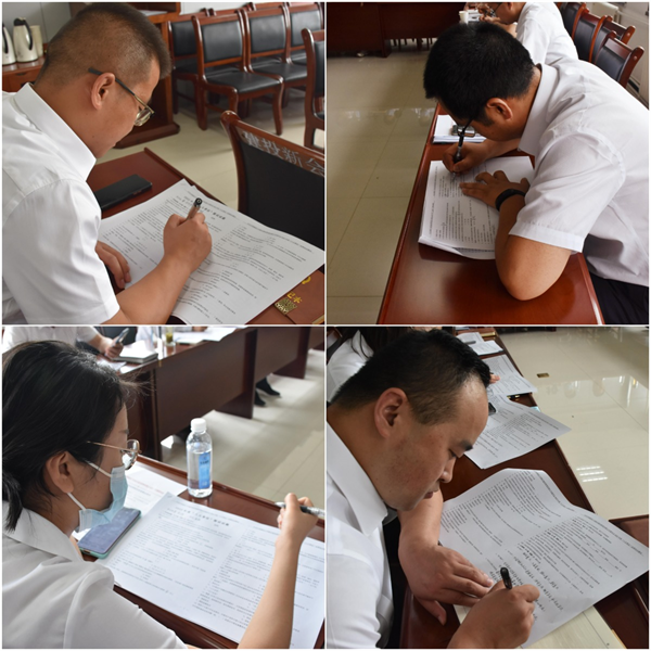 本次知識測試嚴(yán)格遵循普法計劃要求,內(nèi)容涵蓋“習(xí)近平法治思想”、《憲法》、《民法典》、《安全生產(chǎn)法》等重大法律法規(guī)知識和相關(guān)系統(tǒng)行業(yè)法律法規(guī)、黨內(nèi)法規(guī),試題由單項選擇題、多項選擇題、填空題、判斷題和簡答題組成,大家嚴(yán)守考場紀(jì)律,認(rèn)真閱卷、仔細(xì)作答。