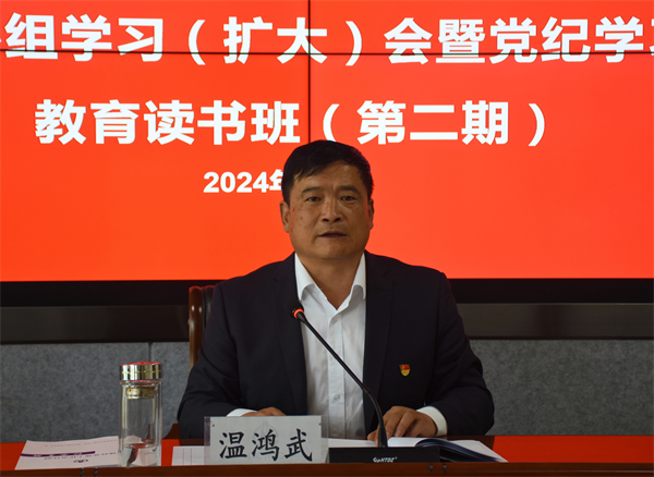 5月9日,新區公司黨委召開理論學習中心組學習(擴大)會暨黨紀學習教育讀書班(第二期),新區公司、科工集團領導班子成員、主管級干部、各黨支部書記及基層黨員代表參加會議。會議由新區公司紀委書記、監事會主席溫鴻武主持。