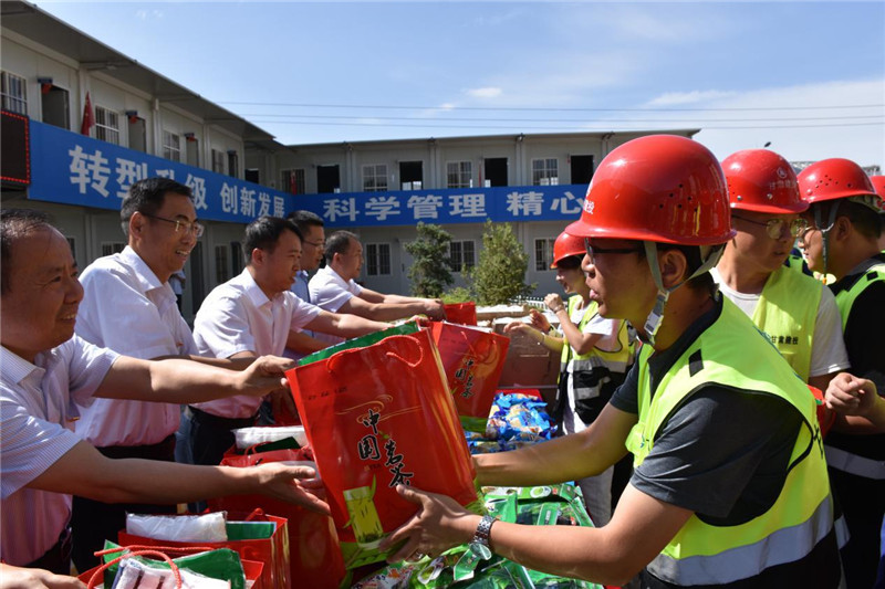 王燚峰對奮戰在一線、為蘭州新區建設“舍小家為大家”的建設者表示感謝,同時指出,此次活動帶來的不僅是慰問,更是集團公司的關懷和問候,并叮囑一線施工管理人員在搞好生產的同時也要保重身體,根據具體生產條件,合理安排職工作息,預防高溫中暑和生產安全事故發生。