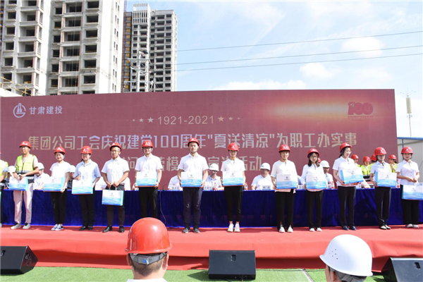 正逢伏天,高溫肆虐,為做好防暑降溫工作,深入貫徹落實(shí)“我為群眾辦實(shí)事”實(shí)踐活動(dòng)精神,保障一線人員身心健康,推動(dòng)項(xiàng)目建設(shè)高質(zhì)量完成,7月21日,甘肅省建設(shè)投資(控股)集團(tuán)有限公司在蘭州新區(qū)瑞嶺嘉苑項(xiàng)目開展了慰問送清涼及勞模宣講活動(dòng),為項(xiàng)目一線人員和食堂送上毛巾、茶葉、冰糖、羊、豬等慰問品。集團(tuán)公司黨委副書記、總經(jīng)理束水龍、紀(jì)委書記鞏凌宇、副總經(jīng)理李鎖林一行及各參建單位主要領(lǐng)導(dǎo)出席活動(dòng),各參建單位員工代表、項(xiàng)目管理人員及一線工人近700人接受慰問。