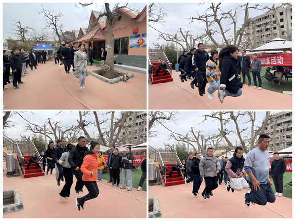 參觀結束后,素質拓展訓練活動如火如荼開展。全體干部職工熱情高漲,踴躍參與,大膽靠前嘗試,勇于挑戰(zhàn)自我。全體職工進行打亂分組,全身心投入到跳繩絲帶素質拓展訓練中,大家互相鼓勵、團結一致、密切合作的團隊精神得到集中體現。此次素質拓展訓練活動的開展,讓職工在緊張忙碌的工作中得到放松,增強了體質,架設了一個同事間相互交流的平臺,增進了彼此之間的溝通了解和友誼,進一步激發(fā)了廣大干部職工“團結拼搏、奮發(fā)向上”的工作熱情、活力和動力。