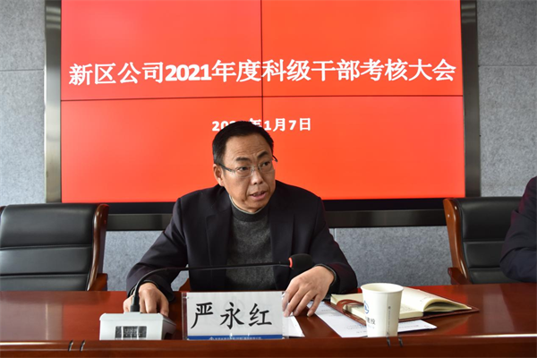 2022年1月7日,新區公司召開2021年度科級干部考核大會,會議由公司黨委委員、總經理殷翔主持,新區公司領導班子成員、科級干部與全體正式職工參加會議。此次大會旨在深入貫徹全面從嚴治黨要求,加強公司黨委對科級領導干部的監督,強化壓力傳導與考核評價,促進黨員干部守紀律、講規矩,廉潔從業,全面落實主體責任。