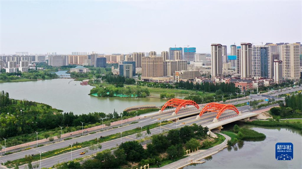 這是我國西北地區首個國家級新區蘭州新區城市面貌(2022年8月10日攝,無人機照片)。新華社記者 陳斌 攝