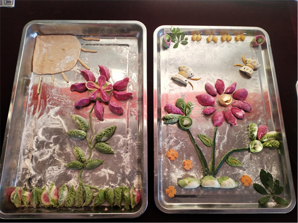 比賽分為搟餃子皮、包餃子、餃子拼圖、吃餃子等環(huán)節(jié)。隨著主持人一聲“比賽開始”,搟餃子皮比賽率先拉開序幕,計時五分鐘,每組選手緊張有序的配合,一個人揉面團,另一個人搟面皮。在場觀眾在一旁為他們加油指導,大家忙得不亦樂乎,情緒高漲。選手們紛紛展示自己的手工技能,你追我趕,不時交流包餃子的技巧,同時在四個餃子里面放了棗作為幸運餃子。選手們技能嫻熟,包出的餃子形態(tài)各異、五彩繽紛,用餃子拼出花草、蝴蝶、太陽、甘肅建投logo等圖案,創(chuàng)意十足。在熱鬧激烈的吃餃子比賽環(huán)節(jié),每個組選出飯量最好、吃飯速度最快的兩名選手,當端上熱騰騰的半斤餃子,選手們大口大口地吃,不甘落后,“狼吞虎咽”的樣子把一旁的觀眾逗得哈哈大笑,同時為他們加油鼓勁。吃的最快的一組僅用1分05秒獲得“最佳吃貨”稱號。