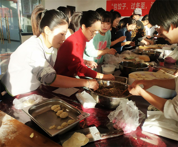 新區(qū)公司職工大多家在市區(qū),冬至無法與家人相聚。新區(qū)公司為讓職工在新區(qū)感受到在家吃餃子的溫暖,組織職工一起動手包餃子,煮餃子,熱熱鬧鬧過冬至。